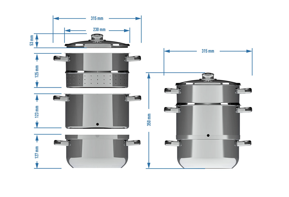 Mahlakeetja on valmistatud väga tugevast (rõhu- ja temperatuuritaluvusega) roostevabast terasest. See on mõeldud igat tüüpi pliitidele.